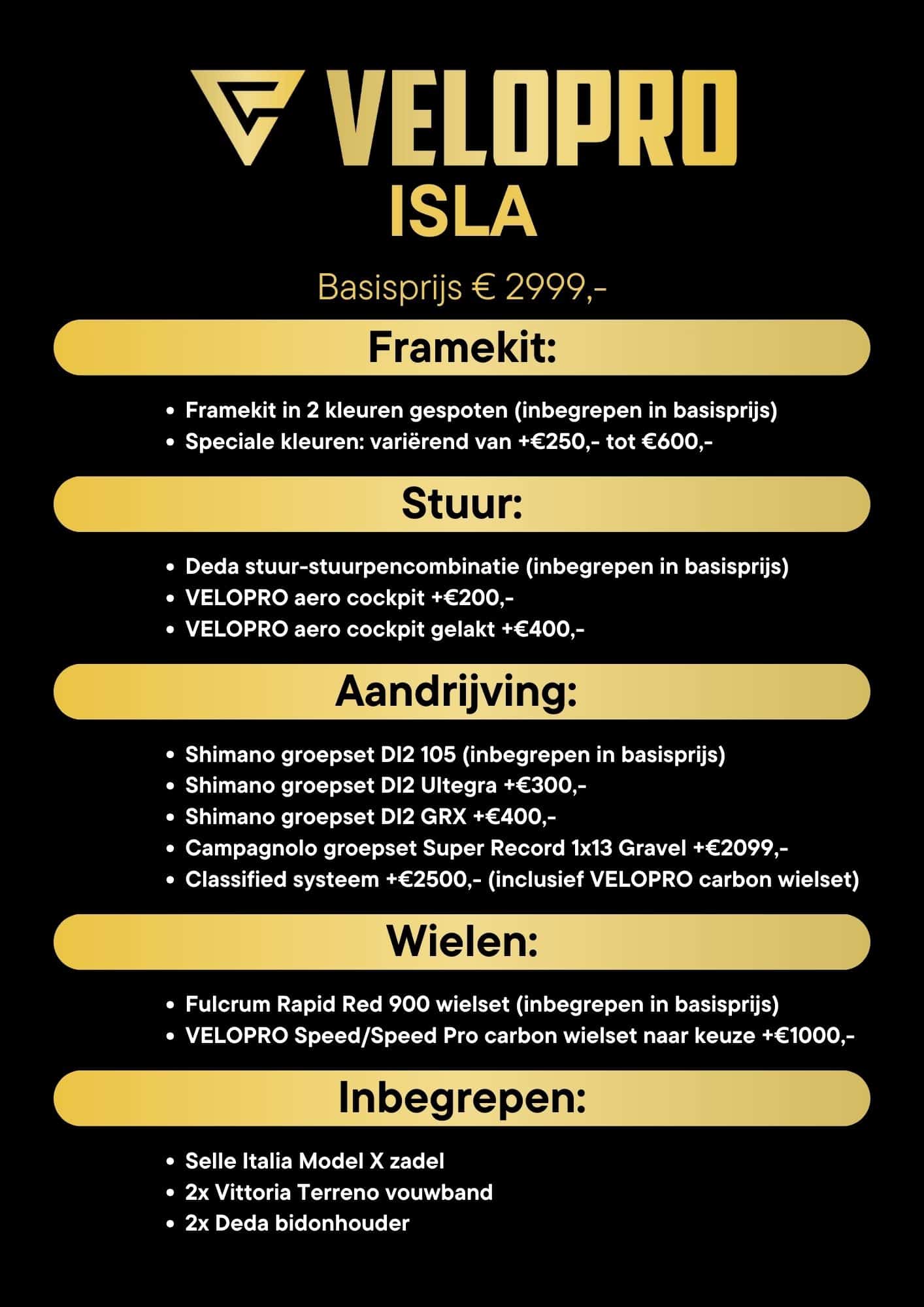 Met een breed scala aan beschikbare maten, zorgt VELOPRO Isla ervoor dat er altijd de perfecte pasvorm is voor elke rijder. De ideale maat vinden voor jouw lengte en rijstijl is nog nooit zo eenvoudig geweest, zodat je verzekerd bent van maximaal comfort en prestaties tijdens elke rit.